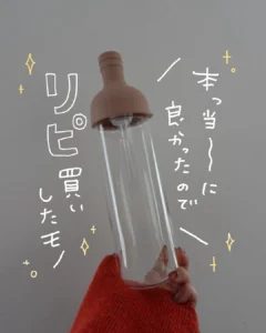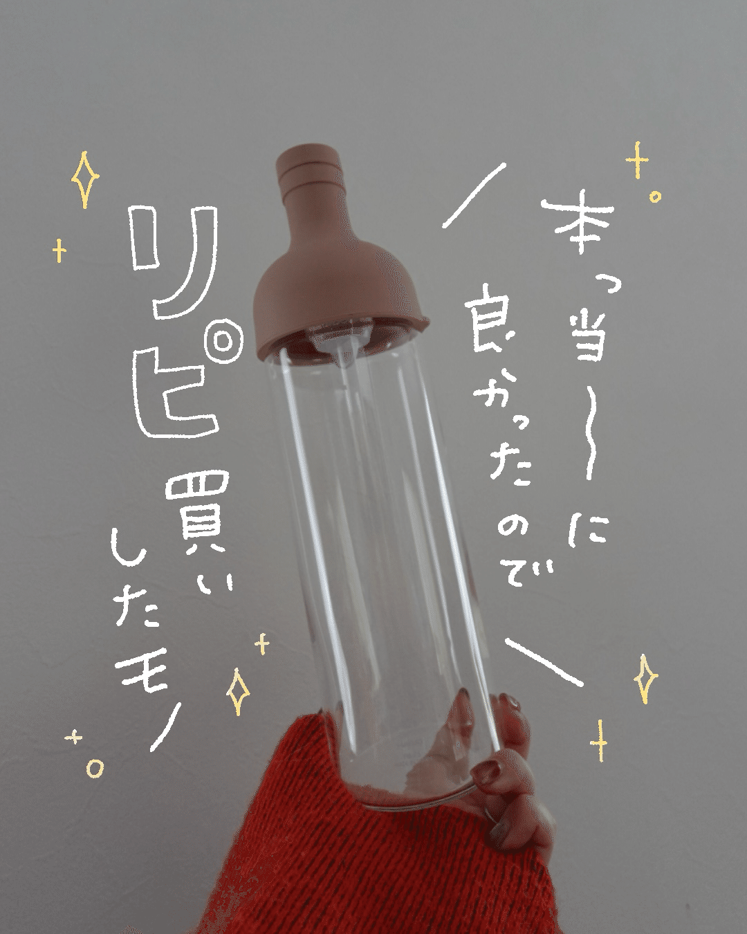 すっかりお気に入りで、我が家では2本目に突入したリピ買いアイテム! 水出し茶が作れるHARIOのかわいいボトルなんですが、うちは「水出しコーヒー用」に使っています☕️