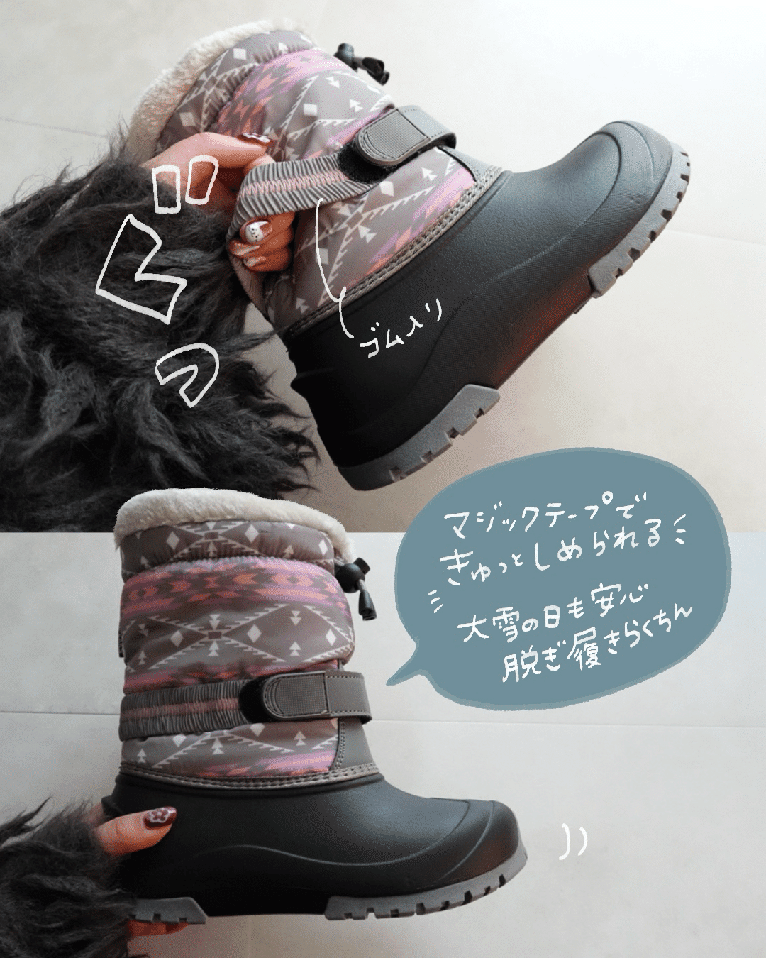 💡 オススメポイント②:脱ぎ履きらくちん&雪が入らない!