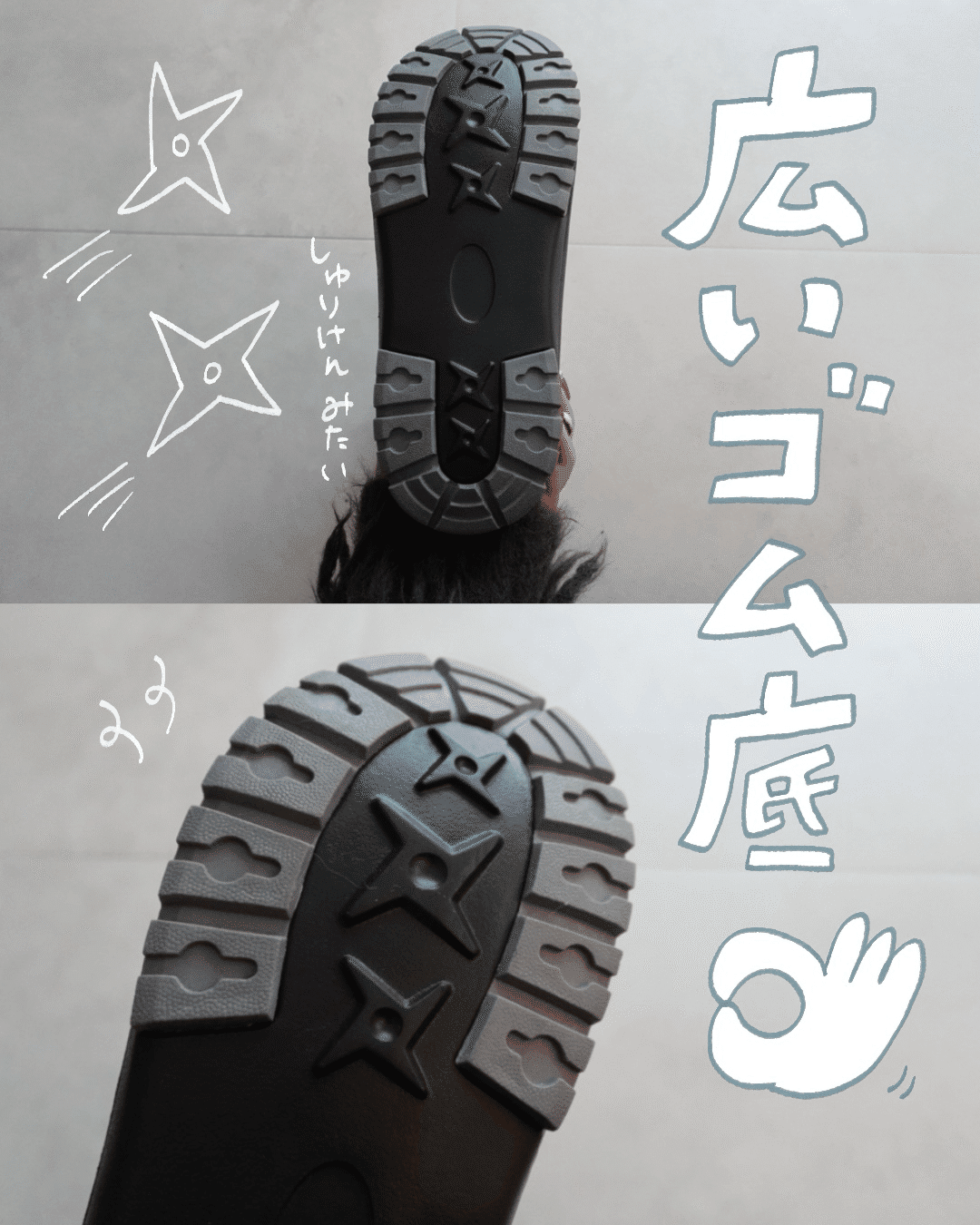 💡 オススメポイント④:滑りにくい「広いゴム底」
