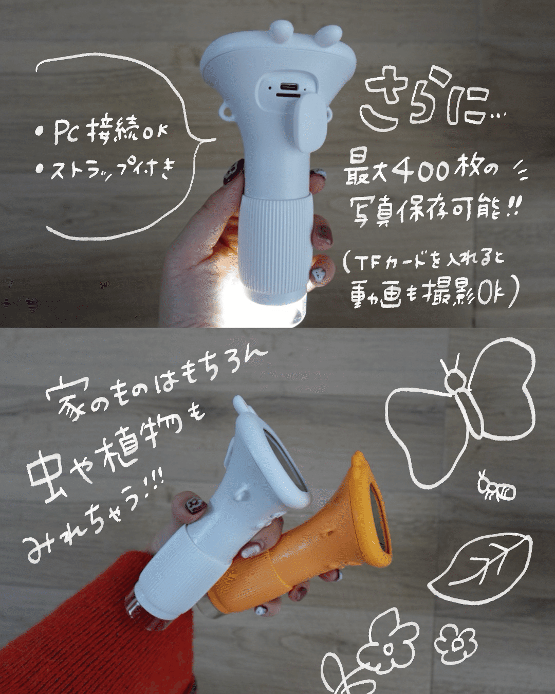 - 最大400枚の写真保存が可能📷(TFカードを入れると動画も撮影できます!)
