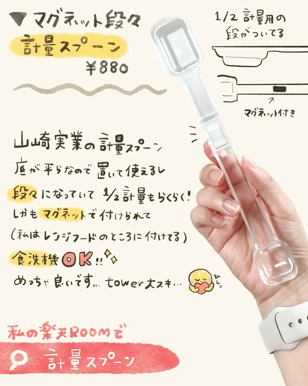 山崎実業 マグネット段々計量スプーン タワー tower 公式 磁石 計量 スプーン メジャースプーン 大さじ 小さじ 一体型 段差 見やすい 耐熱 食洗機対応 持ち手付き 6923 6924 タワーシリーズ マグネットでくっつく大さじと小さじ 置いたまま計れるし、見た目も🙆♀️ しかも食洗機OK やっぱりタワーは最高👍 room.rakuten.co.jp