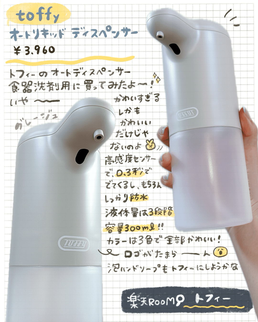 【365日出荷&当店限定特典付】toffy トフィー オートリキッドディスペンサー 液体 自動 タッチレス 300mL 3段階 オート リキッド 抗菌 ディスペンサー 液体タイプ ボトルラベル 防水 レトロ HW-DS2 toffyクラシック ラドンナ 食器洗剤用のオートリキッドディスペンサー🥄 めちゃくちゃかわいいー😭♡ 使い勝手も良かったので 泡タイプもほしい。。。! room.rakuten.co.jp