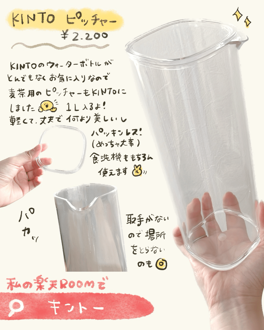 \楽天1位/KINTO キントー OVA ウォーターカラフェ 1L 冷水筒 ピッチャー ピッチャー 1リットル ホワイト グレー ブラック 食洗機対応 四角形 シンプル スリム 縦置き 麦茶ポット 冷水ポット 洗いやすい カラフェ おしゃれ ガラスのピッチャー割っちゃったので KINTOに乗り換え🚃 惚れ惚れする美しさ🥺 透明の蓋しか無かったんだけど、これがまた room.rakuten.co.jp