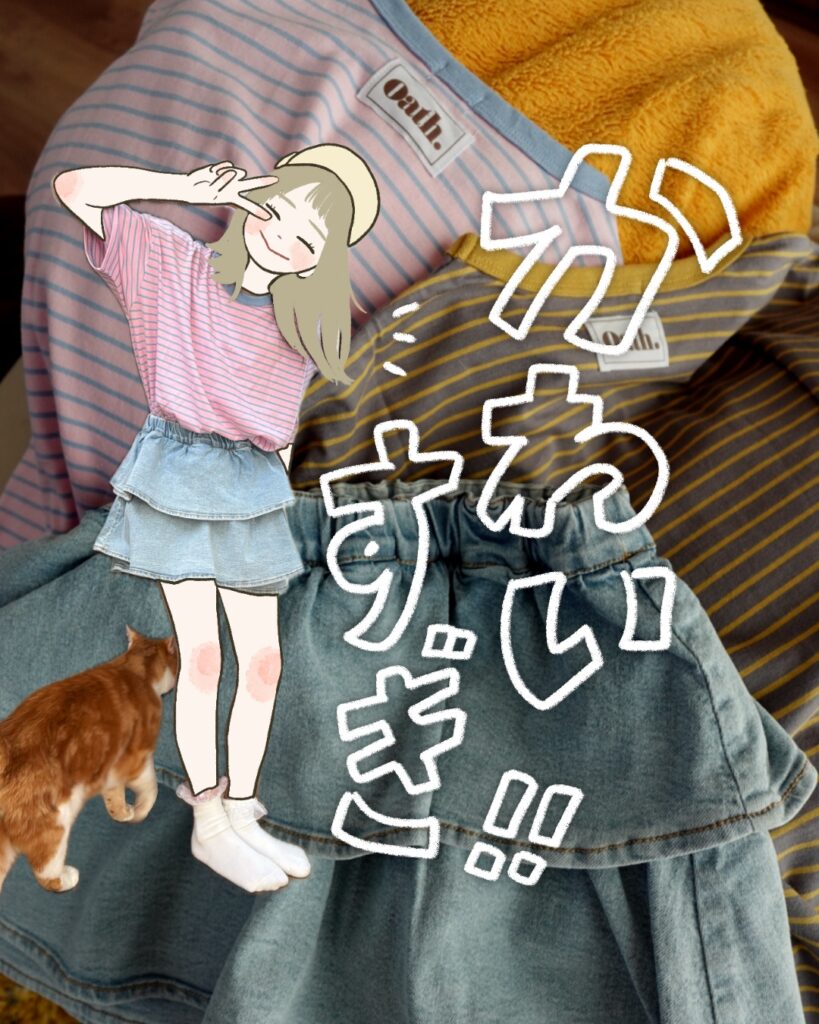 【子供服】pairmanonのボリュームたっぷりデニムスカッツが可愛い